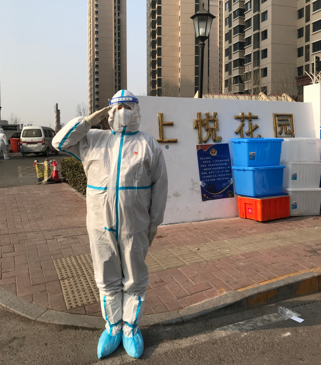 在碧水世纪园小区,闫春红与战友们挨家挨户送菜,敲门问需。“虽然我们工作环境很艰苦,但是身后有亲爱的家人和伙伴们支持与鼓励。大家第一时间为我们准备物资,让我们可以安心的加入驰援津南区疫情防控工作中去。”闫春红边走边说。
