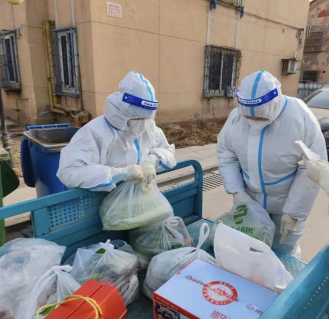 17日一早,社区工作者们进入到高风险小区,开展居民劝导工作并为封控在家的居民运送生活物资。作为社区工作者,大家深知首要任务就是第一时间熟悉小区情况。大家拿着布局图,穿着厚重的防护服走遍了小区的每一个角落。看到偶尔出门的居民,大家就耐心劝导,居民也都十分配合。上午10时,居民们订购的蔬菜等生活物资陆续送到。几个简单的小推车就是全部的运输工具,运送效率很低。一位好心居民,见志愿者们运送十分辛苦,主动将电三轮车借给志愿者运送物资。升级版的运送工具让社工们的干劲更足了,他们用很短的时间学会驾驶,并第一时间将物资送到每家每户。不间断的运送,从白天持续到黑夜,社工们在漆黑的小区里借助手机的微弱灯光,将当天所有的物资全部送达。