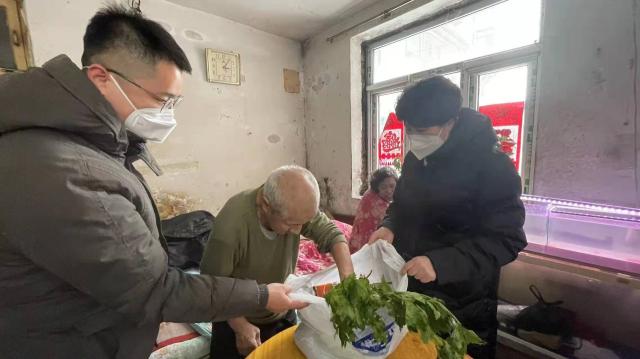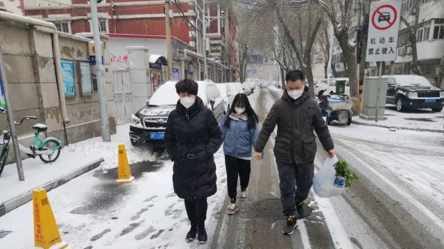 雪天路滑,老人们出门买菜可是个大难题。针对这种情况,社区党委书记王玉枝带领网格员一大早就冒着大雪入户走访,为辖区特殊群体送去果蔬和面食、蛋糕等即食食品,耐心询问老人们身体状况,提醒老人们雪天注意防寒保暖,叮嘱他们大雪天气尽量不要外出,以实际行动帮助困难群众度过雪天。天寒心暖,老人们那简单的“谢谢”和满脸的笑容传递出满满的幸福感。