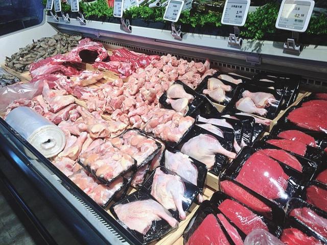 见得最多的白肉就是鸡肉,中国人也好吃鸡肉,宫爆鸡丁、酱爆鸡丁、辣子鸡丁、黄焖鸡,还有炸鸡、烤鸡、鸡腿、鸡翅、鸡脖子......哪样都离不开鸡。超市往往会有很大一片专柜,专门卖各种冷冻鸡产品。