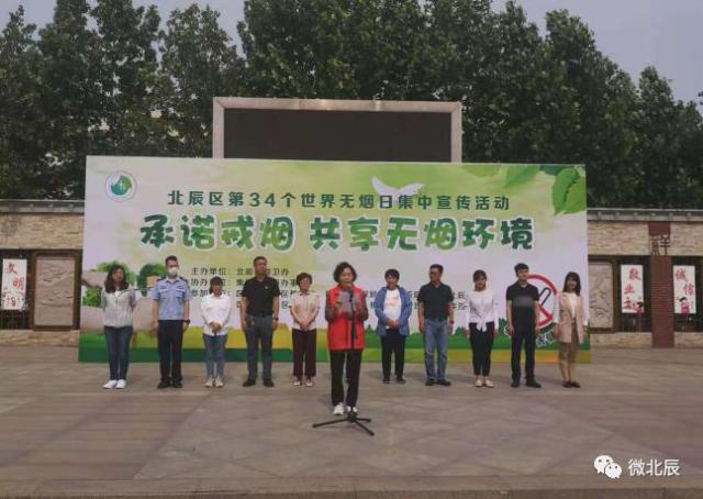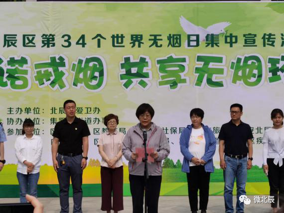 今天是第34个世界无烟日,为进一步加大控烟宣传力度,提升控烟工作水平,共享无烟环境,维护人民群众健康,北辰区爱卫办联合集贤里街在集贤公园举办以“承诺戒烟,共享无烟环境”为主题的集中宣传活动,区政协副主席、区卫健委主任李静出席。